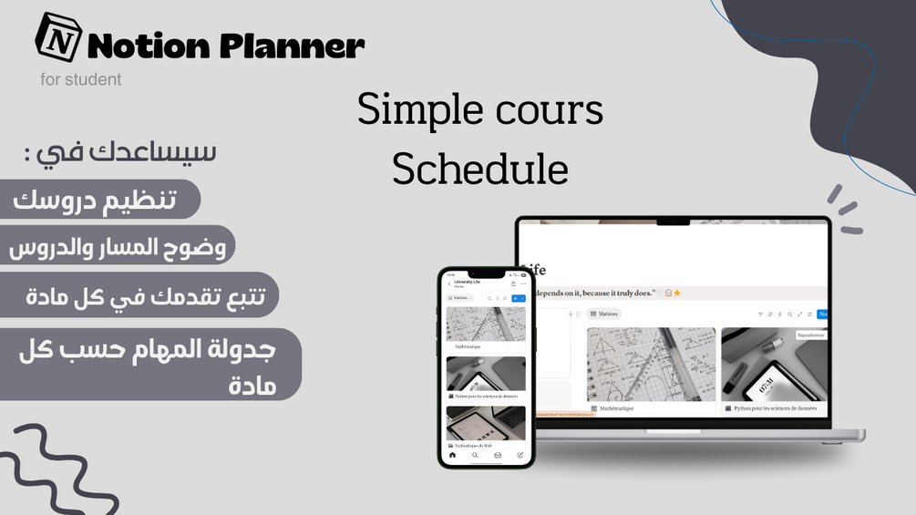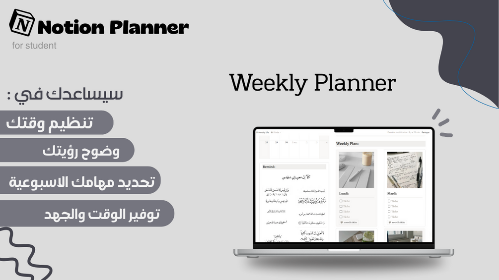 بلانر نوشن دراسي للطلاب والطلبة الجامعيين يمكنك من تنظيم وقتك ومهامك وتتبع تطورك للتحصل على نتائج ممتازة في مسارك الدراسة بالاضافة الى 3 هدايا مجانية